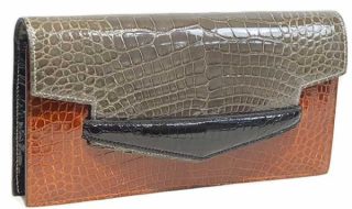 エルメス HERMES ファコエラン トリコロール クロコダイル アリゲーター ブラウン×グレー×黒 〇U刻印 1991年製造 クラッチバッグ セカンドバッグ 本物 ランクA 3色 横長ファコ
