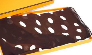 エルメス 横長シルクストール ショール ゴルチェコレクション スカーフ ブラウン×ホワイト シフォンシルク100% 水玉 5万円以下