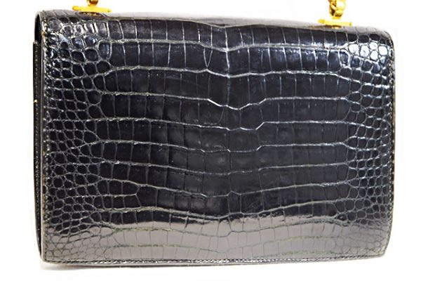 エルメス HERMES アルカザール ショルダーバッグ 黒 クロコダイル ポロサス G金具 ゴールド金具 〇H刻印 1978年製造 本物 ヴィンテージ レア物 2WAYショルダーバッグ ブラック Black クロコ