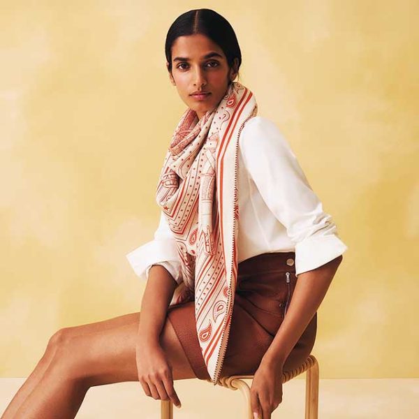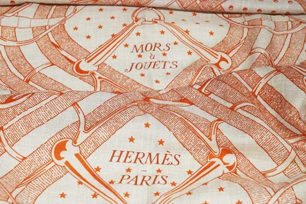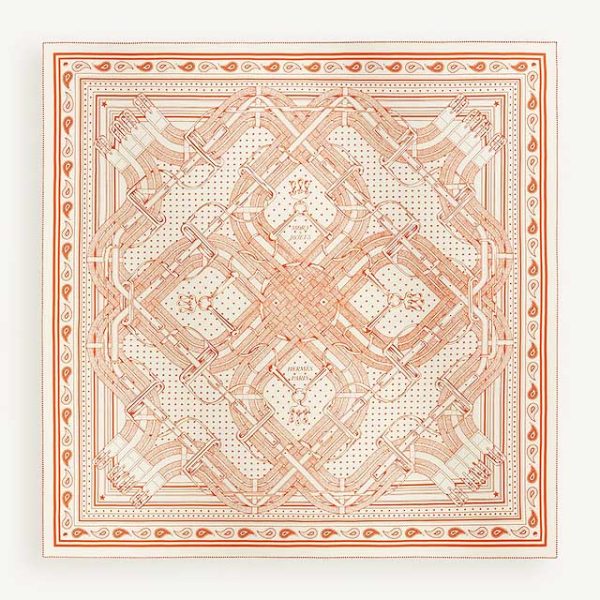 26S新作 エルメス HERMES カシシル 140 カレジェアン Mors a Jouets Bandana shawl トイビット バンダナ柄 大判ショール ストール カシミヤ70%×シルク30% ベージュ×オレンジ 本物 未使用展示品 箱付き ショール 140cm ※参考価格251,900円