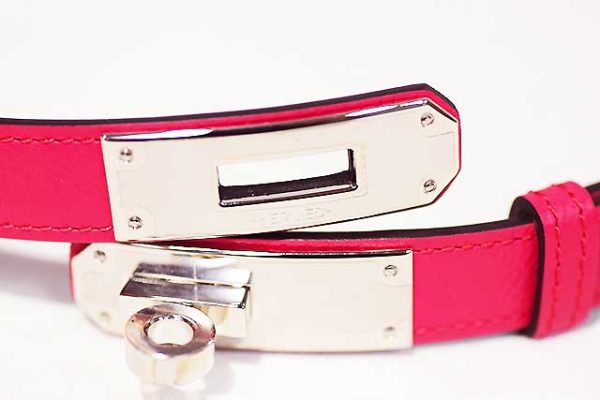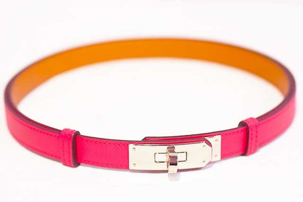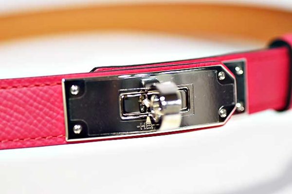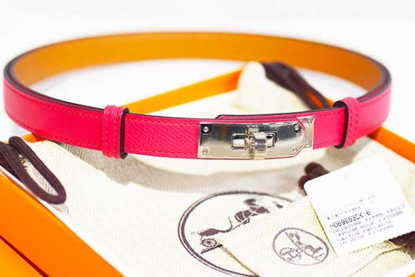 エルメス HERMES ケリーバックル ウエストベルト ケリー18 ローズエクストリーム S金具 シルバー金具 エプソン A刻印 2017年製造 本物 未使用 展示品 参考価格216,700円 Rose Extreme ピンク