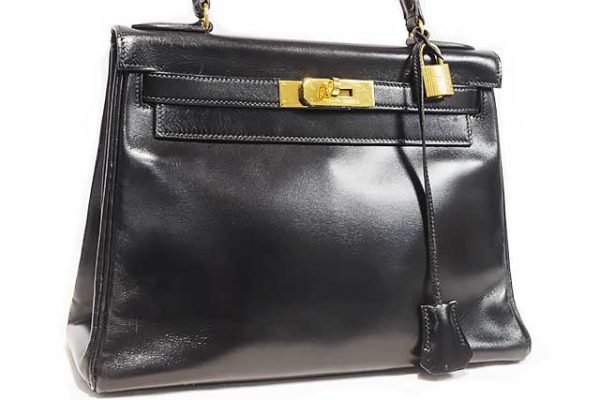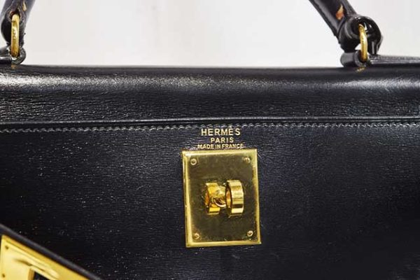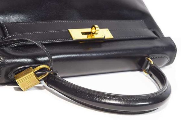 エルメス HERMES ケリー28 内縫い 黒 ブラック ボックスカーフ G金具 ゴールド金具 F刻印 1976年製造 本物 ヴィンテージ black 28cm ケリーバッグ ※ショルダー無し