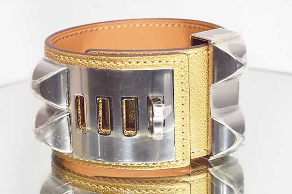 エルメス ブレスレット コリエドシアン ブレス DORE ドレ シェーブル シルバー金具 S金具 T2 Sサイズ W刻印 2024年製造 箱付き HERMES 本物 未使用 ブレスレット バングル メタリック ゴールド