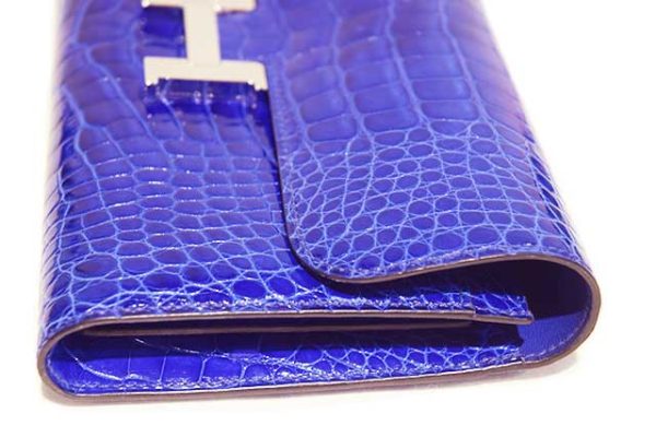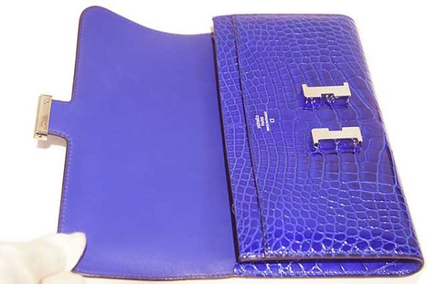 エルメス コンスタンスロング ウォレット ブルーエレクトリック クロコダイル アリゲーター S金具 □Q刻印 長財布 100万円以下