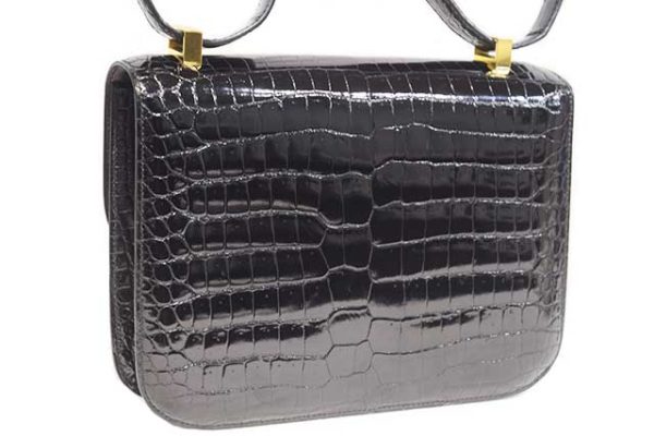 エルメス HERMES コンスタンス23 黒 ブラック クロコダイル ポロサス G金具 ゴールド金具 □C刻印 1999年製造 ショルダーバッグ ハンドバッグ 本物 未使用 保管品