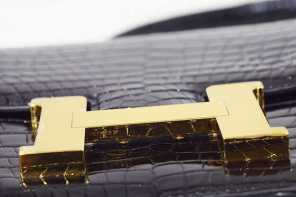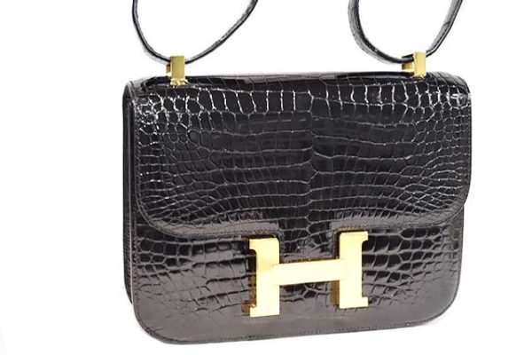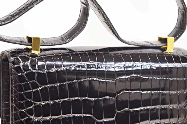 ●コンスタンス23!●クロコダイルポロサス×黒×ゴールド金具!●□C刻印(1999年製造)●付属品:無し!●ランクは未使用保管品!●H金具にシールも付いたまま。