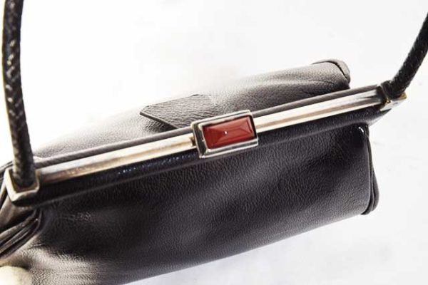●レザー×黒×シルバー金具!●刻印は不明ですが間違いなく本物!レア物!●付属品:保管袋×1,箱!●赤い石の付いた金具をスライドされると開閉でき、2箇所に収納できる非常にお洒落な逸品!コレクションに是非!●ランクはヴィンテージのランクA!●内側、外側ともに使用に伴なう多少の薄擦れくらいですっがヴィンテージのご理解のある方へ・・