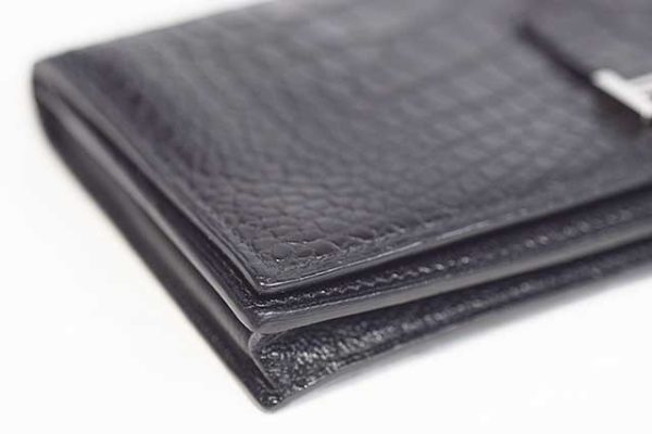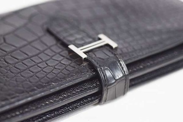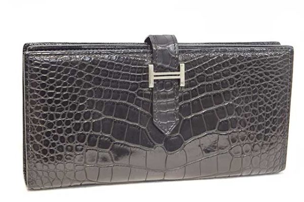 エルメス HERMES 長財布 ベアンスフレ マットクロコダイル アリゲーター 黒 ブラック S金具 シルバー金具 □N刻印 2010年製造 本物 ランクA マット クロコ マチあり Black