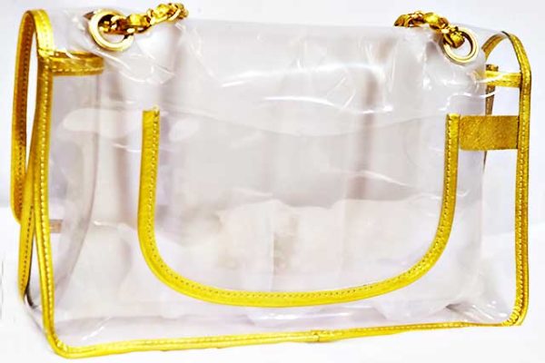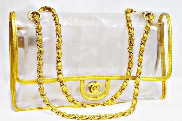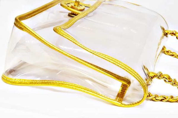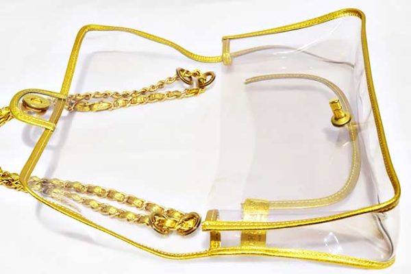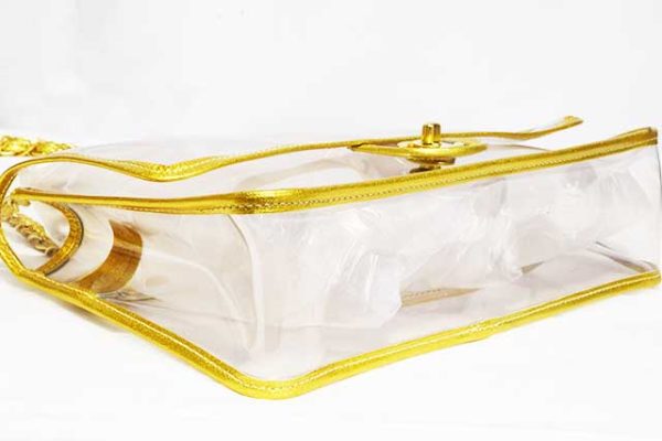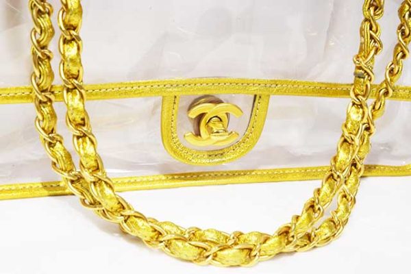 シャネル CHANEL ビニール チェーンショルダーバッグ PVC×レザー クリア ビニール ゴールド×クリア マットゴールド金具 MG金具 2WAYショルダー GOLD 本物 新品同様 ショルダーハンドバッグ レア物