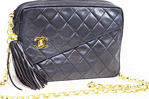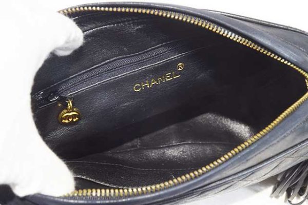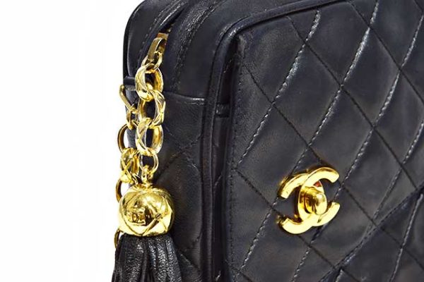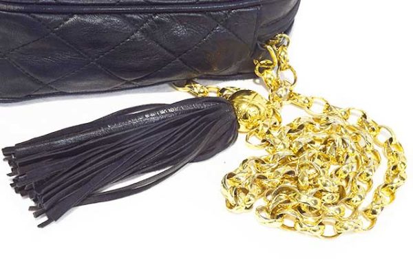 シャネル CHANEL フリンジ マトラッセ チェーンショルダーバッグ 黒 ブラック ラムスキン G金具 ゴールド金具 タッセル 斜め掛け CCマーク ターンロック 本物 ランクAB Black