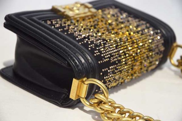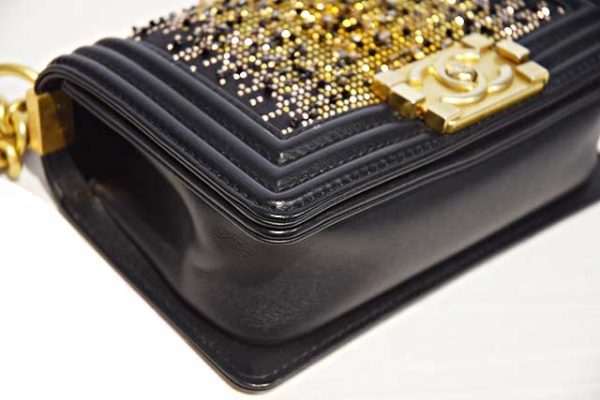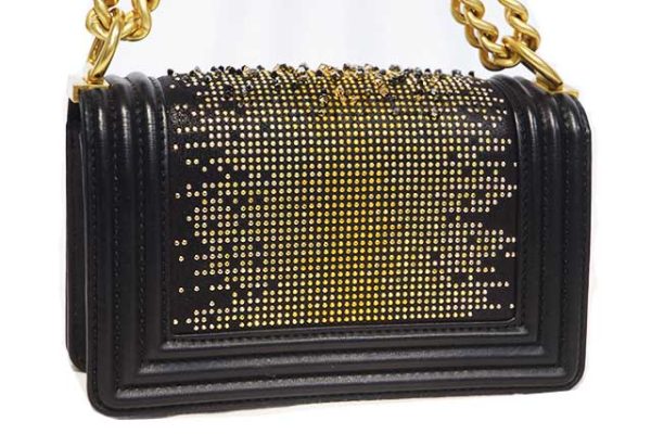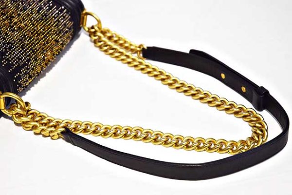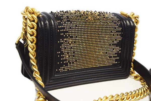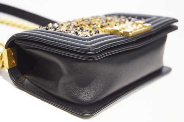 シャネル CHANEL ボーイシャネル ラインストーン付き 2WAY ショルダー バッグ W20 黒 ブラック MG金具 マットゴールド金具 レザー 28番台 本物 新品同様 Black