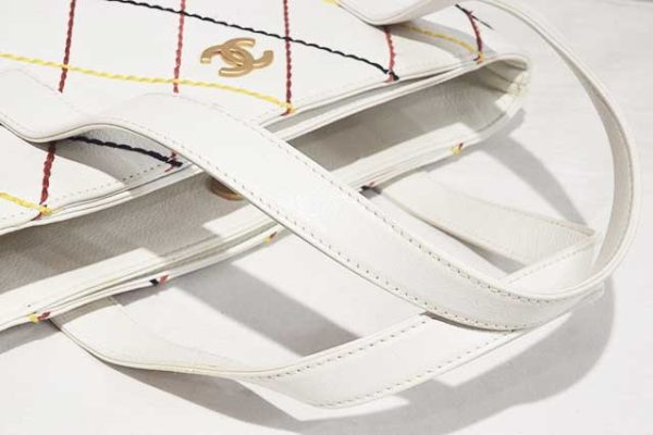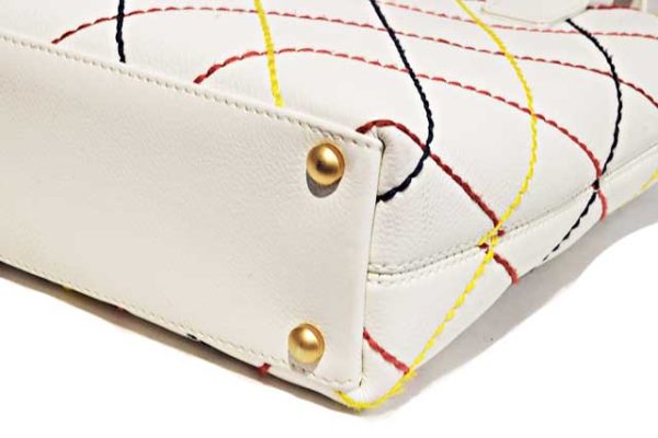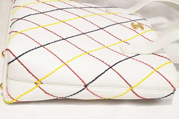 シャネル CHANEL ワイルドステッチ トートバッグ ハンドバッグ 白 ホワイト マルチカラーステッチ MG金具 マットゴールド金具 カーフレザー 本物 ランクA