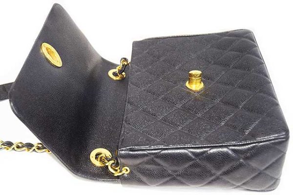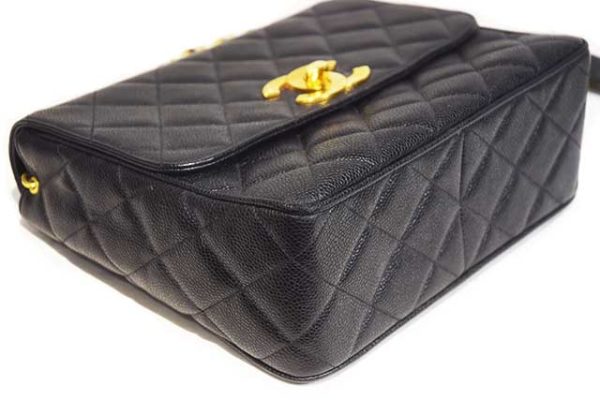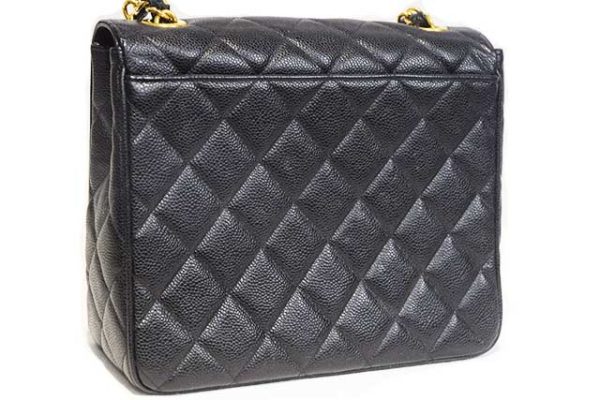 ャネル CHANEL スクエア型 マトラッセ チェーンショルダーバッグ 黒 ブラック キャビアスキン G金具 ゴールド金具 ビッグコココ CCマーク ターンロック 本物 ランクA Black