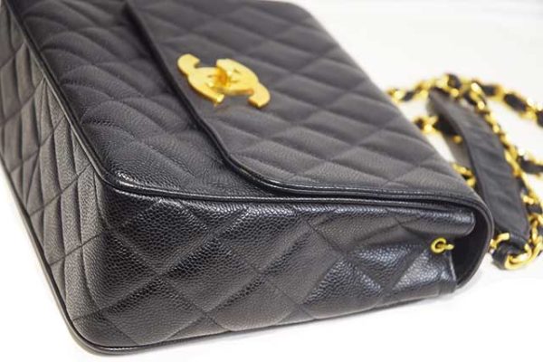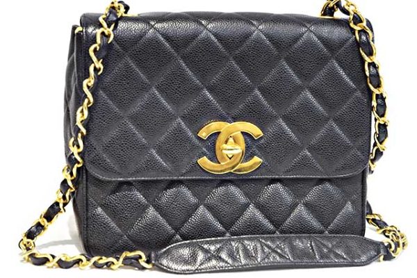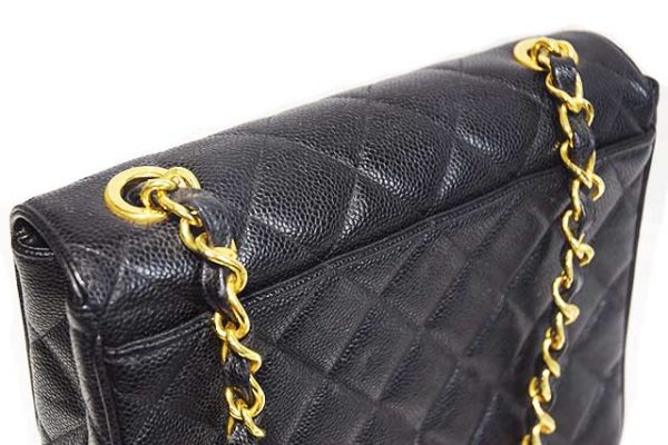 シャネル CHANEL スクエア型 マトラッセ チェーンショルダーバッグ 黒 キャビアスキン G金具 ビッグコココ ランクA 47万以下