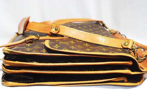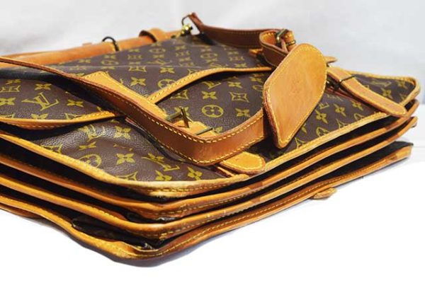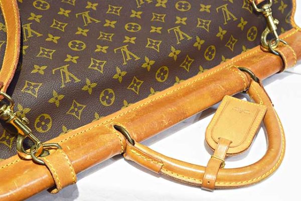 ●モノグラム×ヌメ革×ゴールド金具!●素材はPVC×ヌメ革!●製造番号862 ●ランクはAB(ヴィンテージ)●ヌメ革も雰囲気良く飴色になっています。金具も雰囲気良いです!●付属品:ネームタグ、ショルダー!●両面どちらからもベルトで開封でき荷物もたっぷり収納できます!●ショルダーは取り外し可能なので、2WAYでご使用いただけます!●嫌な臭いもしません