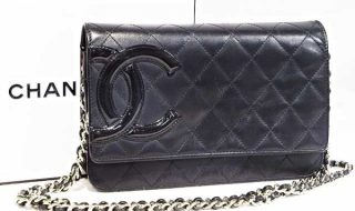 シャネル カンボンライン チェーンショルダー ウォレット 長財布 ブラック 黒 カーフレザー×パテント S金具 ランクA 25万以下