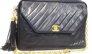 シャネル CHANEL フリンジ マトラッセ チェーンショルダーバッグ 黒 ブラック ラムスキン G金具 ゴールド金具 タッセル 斜めステッチ CCマーク ターンロック 本物 ランクAB Black ヴィンテージ …詳細を見る -