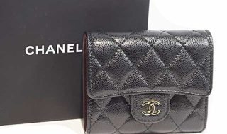 シャネル クラシック スモール フラップ ウォレット 三つ折り財布 黒 キャビアスキン G金具 未使用 展示品 20万円以下