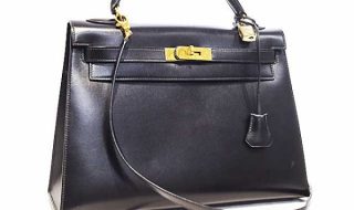 エルメス ケリー32 外縫い 黒 G金具 〇V刻印 ボックスカーフ ランクA 128万円